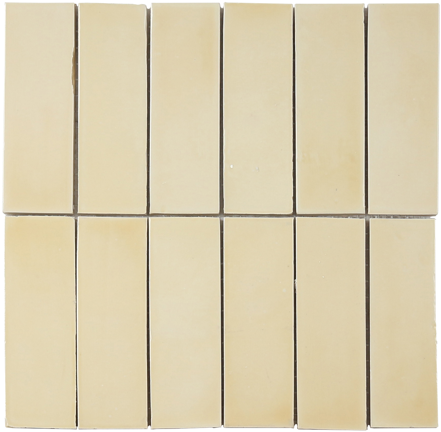 รายละเอียดโดยย่อ: กระเบื้องโมเสกเซรามิกทรงสี่เหลี่ยมผืนผ้า จัดเรียงเป็นตาข่ายแบบ 2×6 ผิวเงาสีเบจอ่อน เหมาะสำหรับติดผนังห้องน้ำ ผนังหลังซิงค์ครัว และการตกแต่งภายในโทนร้อนอบอุ่นที่เน้นสีกลาง
