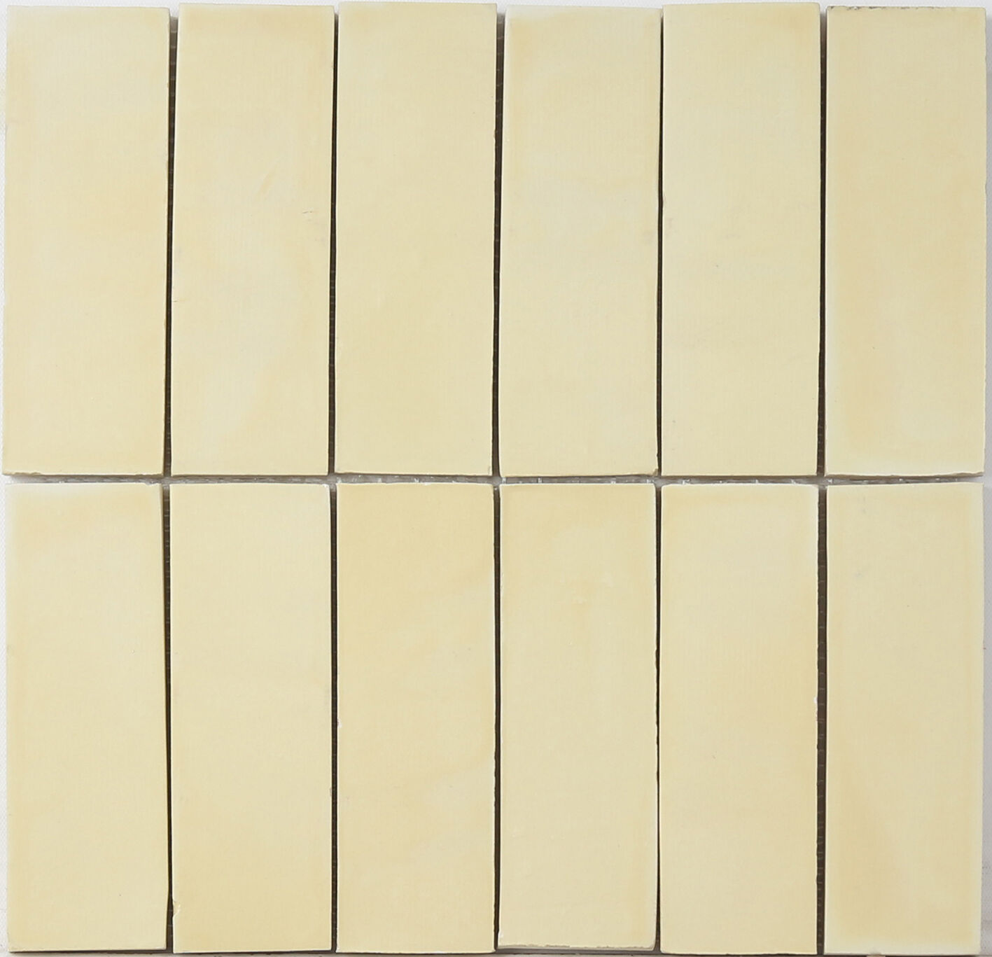 รายละเอียดโดยย่อ: กระเบื้องโมเสกเซรามิกทรงสี่เหลี่ยมผืนผ้า จัดเรียงเป็นตาข่ายแบบ 2×6 ผิวด้านสีเบจอ่อน เหมาะสำหรับติดผนังห้องน้ำ ผนังหลังซิงค์ครัว และการตกแต่งภายในโทนร้อนอบอุ่นที่เน้นสีกลาง