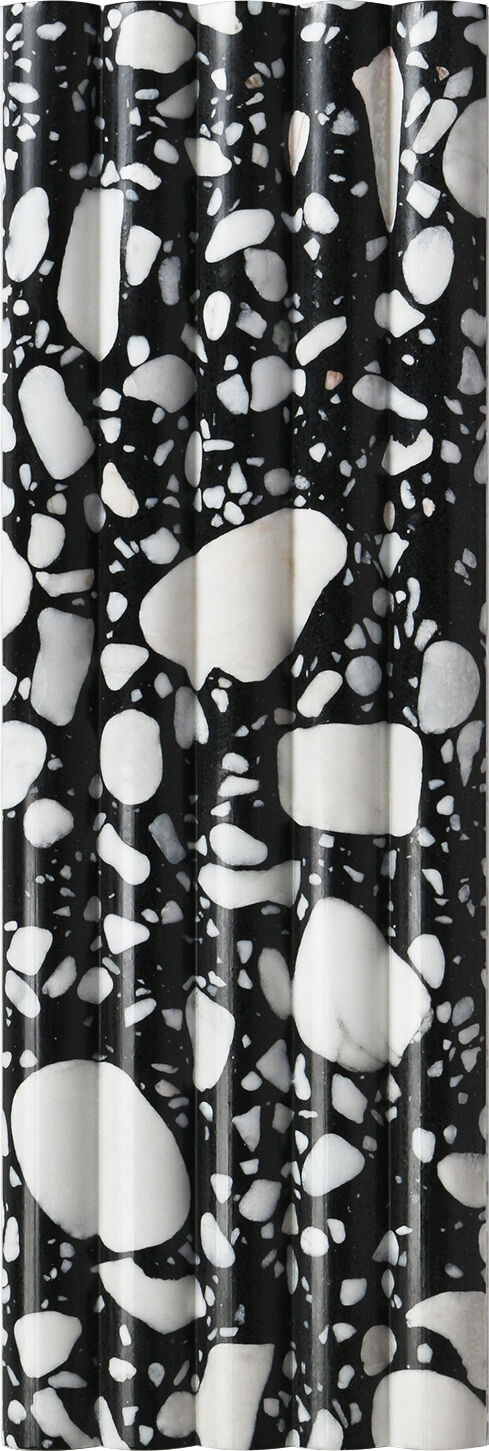 Mga Tag: Wavy Striped Black & White Terrazzo Mosaic, 3D Ceramic Tile, Modernong Dekoratibong Mosaic na Tile para sa Pader