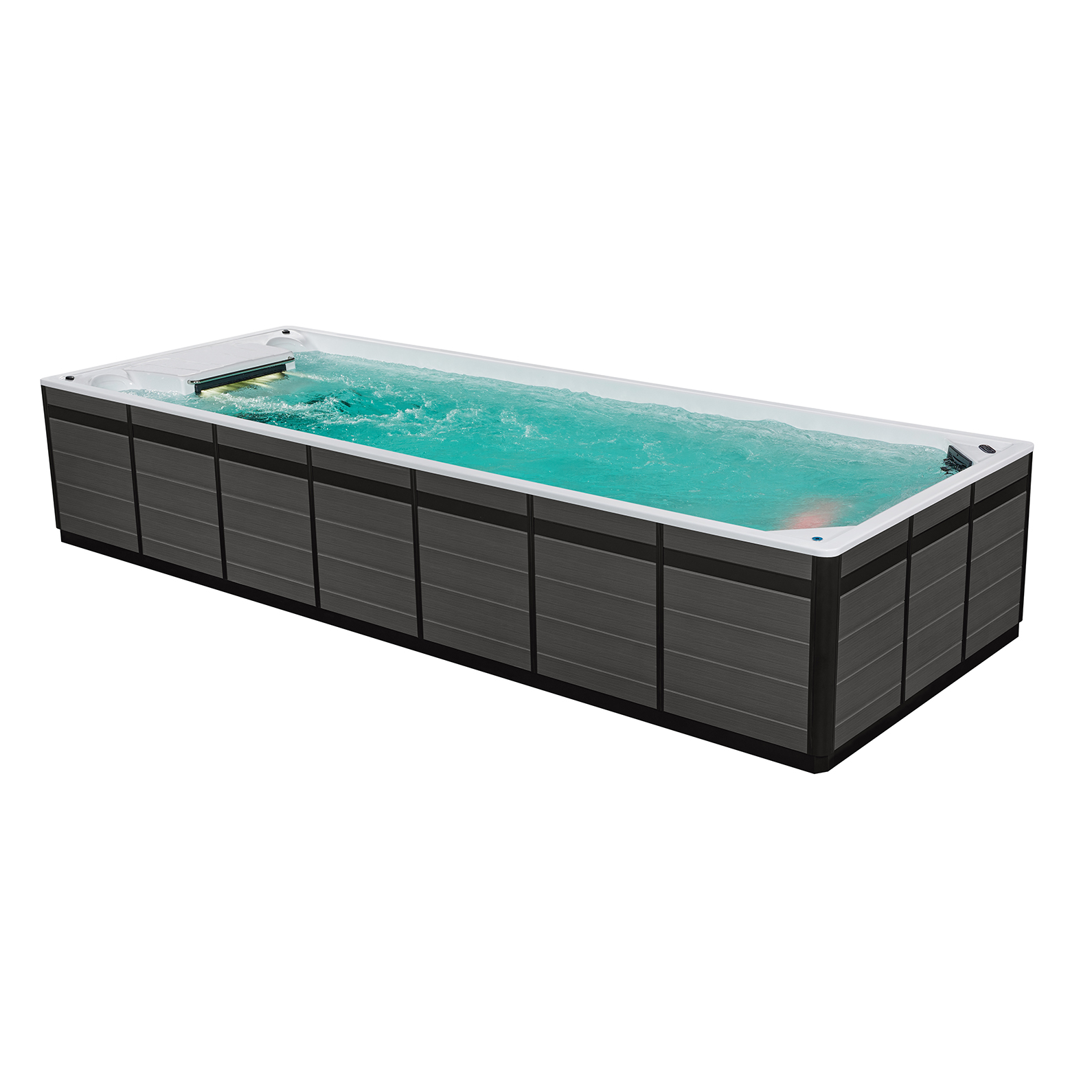 Quick Details:Model WS-PC08T endless swim spa (no skirt), crafted from Chinese white acrylic, sized 8000×3000×1500mm with 28pcs jets, dual 2.8kW swim training systems and 3kW heater control system, total power 10.85KW.Equipped with UV light, ozone, 3pcs LED lamps and 1 handrail, net weight 1841KGS (2038KGS with skirt), compatible with 1 set in 40OT container loading.